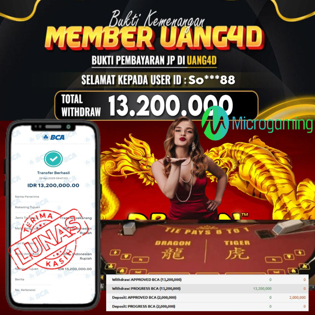 UANG4D – JACKPOT CASINO Live Games-SMG_MGLiveGrand_DragonTiger 22 APRIL 2025, Jackpot CASINO, Kemenangan Di CASINO, Bukti Kemenangan Situs Aman Terpercaya, Withdraw Berapapun Pasti DI Bayar Tuntas, Maxwin Live Casino Online.