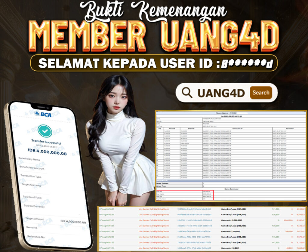 Jangan lewatkan kesempatan untuk meraih kemenangan besar. Daftar sekarang di UANG4D dan rasakan pengalaman bermain slot terbaik yang pernah ada! Putar gulungan, menangkan jackpot, dan jadilah bagian dari komunitas pemain sukses kami!
