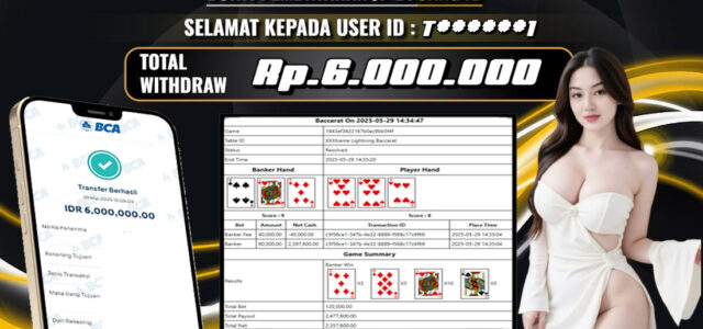 UANG4D – JACKPOT Live Games EVO Lightning Baccarat 29 MEI 2025, Jackpot CASINO, Kemenangan Di CASINO, Bukti Kemenangan Situs Aman Terpercaya, Withdraw Berapapun Pasti DI Bayar Tuntas, Maxwin Live Casino Online.