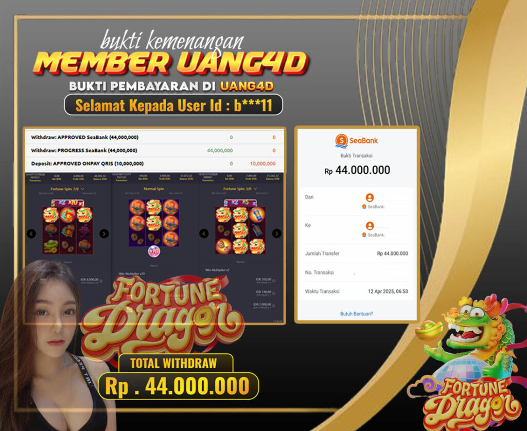 UANG4D –JACKPOT SLOT Fortune-Dragon 12 APRIL 2025 , Kemenangan Slot, Bukti Kemenangan Slot, Kemenangan Slot PG Soft, Menang Slot online, Slot Gacor, Situs Aman Terpercaya, Withdraw Berapapun Pasti DI Bayar Tuntas, Maxwin Slot Online.
