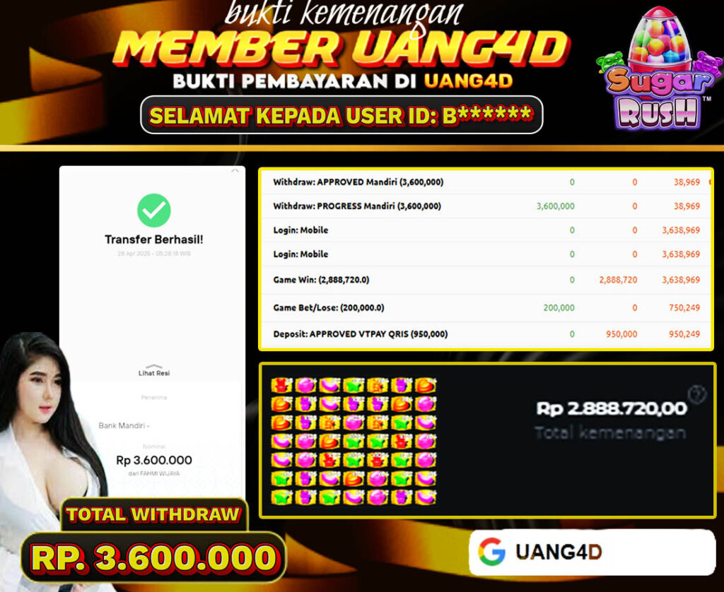UANG4D– JACKPOT SLOT GACOR SUGAR RUSH 28, APRIL, 2025 , Jackpot Slot, Kemenangan Slot, Bukti Kemenangan Slot, Kemenangan Slot Pragmatic Play, Menang Slot online, Slot Gacor, Situs Aman Terpercaya, WD Berapapun Pasti DI Bayar Tuntas, Maxwin Slot Online.