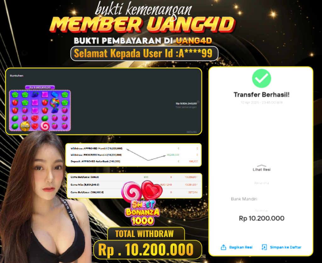 UANG4D– JACKPOT SLOT GACOR SWEET BONANZA x1000 11, APRIL, 2025, Jackpot Slot, Kemenangan Slot, Bukti Kemenangan Slot, Kemenangan Slot Pragmatic Play, Menang Slot online, Slot Gacor, Situs Aman Terpercaya, WD Berapapun Pasti DI Bayar Tuntas, Maxwin Slot Online.
