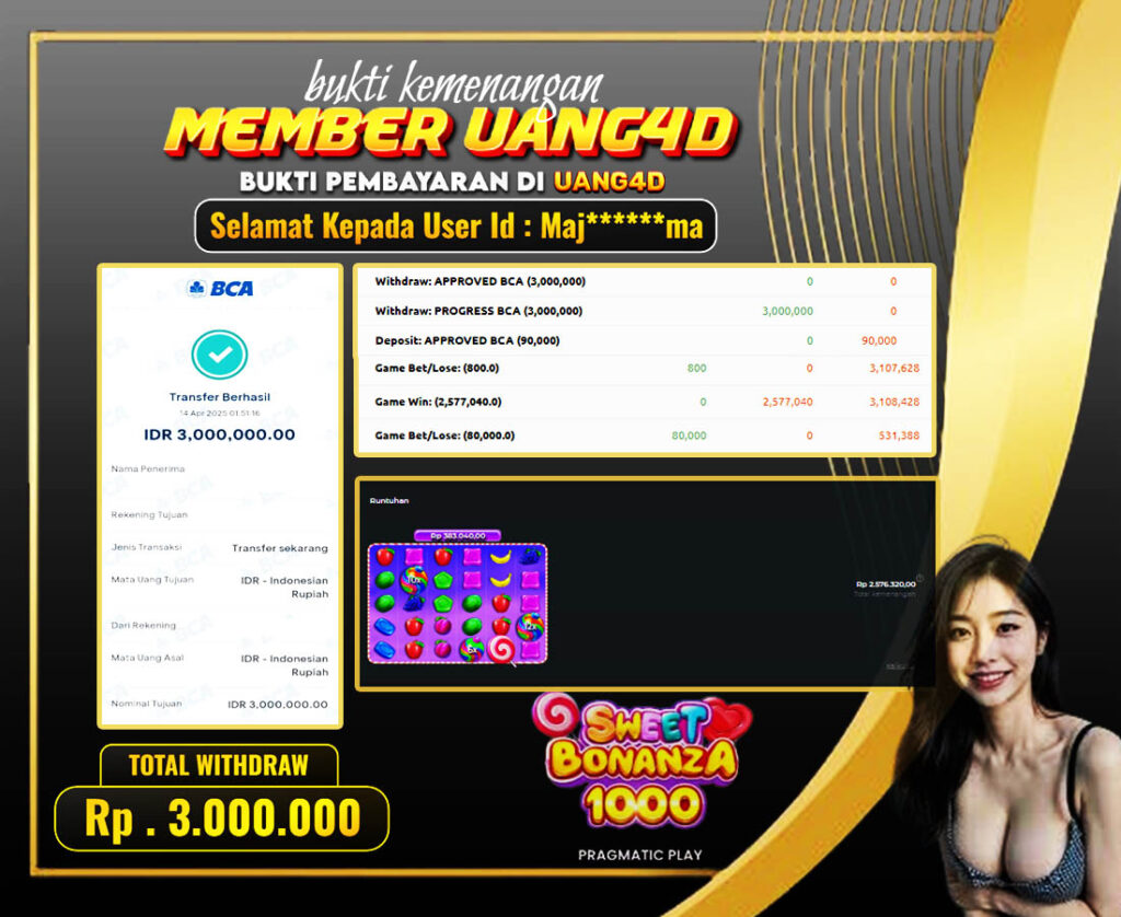 UANG4D– JACKPOT SLOT GACOR SWEET BONANZA x1000 14, APRIL, 2025, Jackpot Slot, Kemenangan Slot, Bukti Kemenangan Slot, Kemenangan Slot Pragmatic Play, Menang Slot online, Slot Gacor, Situs Aman Terpercaya, WD Berapapun Pasti DI Bayar Tuntas, Maxwin Slot Online.