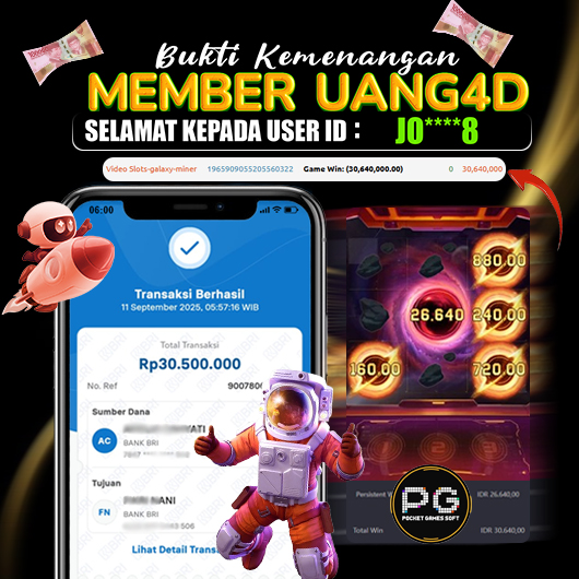 UANG4D – JACKPOT SLOT GALAXY MINER 11 SEPTEMBER 2025 , Jackpot Slot, Kemenangan Slot, Bukti Kemenangan Slot, Kemenangan Slot PG SOFT, Menang Slot online, Slot Gacor, Situs Aman Terpercaya, Withdraw Berapapun Pasti Di Bayar Tuntas, Maxwin Slot Online.