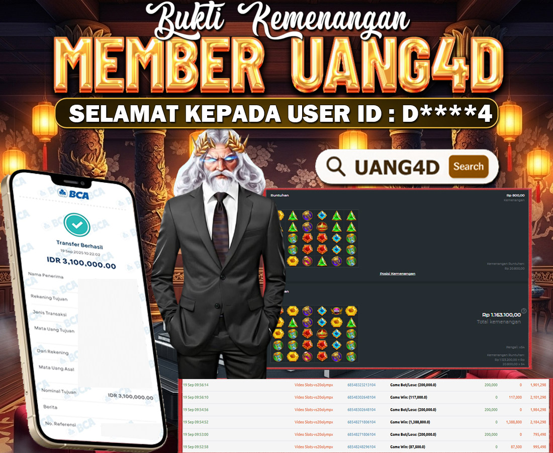 UANG4D –JACKPOT SLOT Gates of Olympus (1000) 19 SEPTEMBER 2025 Kemenangan Slot, Bukti Kemenangan Slot, Kemenangan Slot Pragmatic Play, Menang Slot online, Slot Gacor, Situs Aman Terpercaya, Withdraw Berapapun Pasti DI Bayar Tuntas, Maxwin Slot Online.