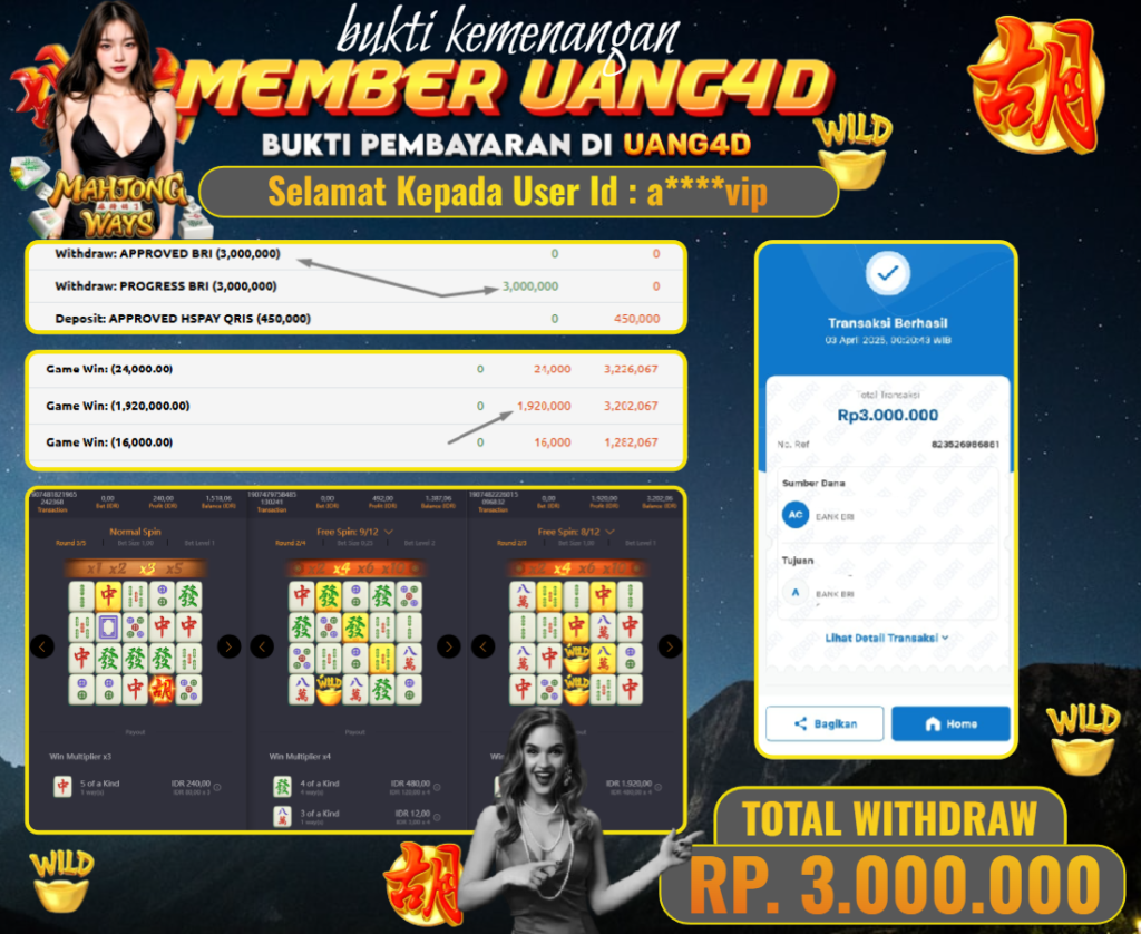 UANG4D JACKPOT SLOT MAHJONG WAYS 02 APRIL 2025, Jackpot Slot, Kemenangan Slot, Bukti Kemenangan Slot, Kemenangan Slot Pragmatic Play, Menang Slot online, Slot Gacor, Situs Aman Terpercaya, Withdraw Berapapun Pasti DI Bayar Tuntas, Maxwin Slot Online.