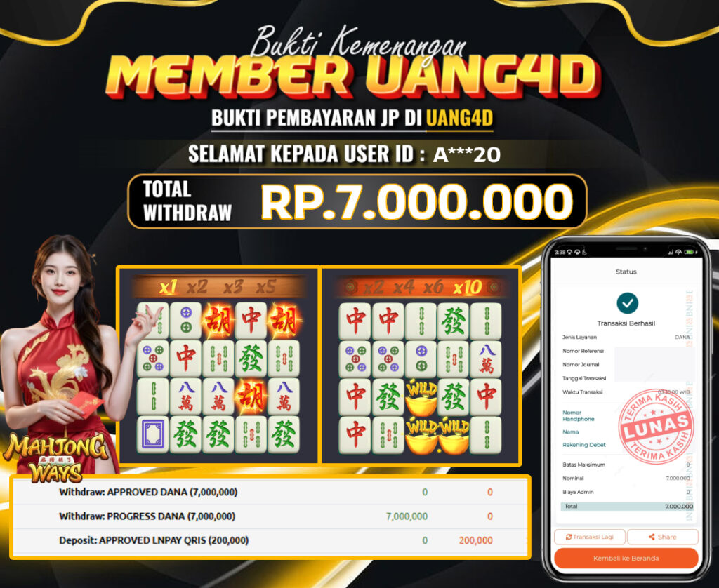 Jangan lewatkan kesempatan untuk meraih kemenangan besar. Daftar sekarang di UANG4D dan rasakan pengalaman bermain slot terbaik yang pernah ada! Putar gulungan, menangkan jackpot, dan jadilah bagian dari komunitas pemain sukses kami!