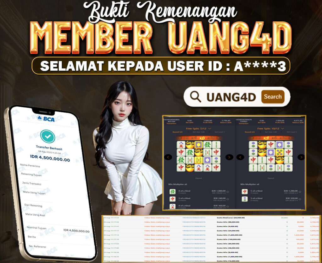 Jangan lewatkan kesempatan untuk meraih kemenangan besar. Daftar sekarang di UANG4D dan rasakan pengalaman bermain slot terbaik yang pernah ada! Putar gulungan, menangkan jackpot, dan jadilah bagian dari komunitas pemain sukses kami!