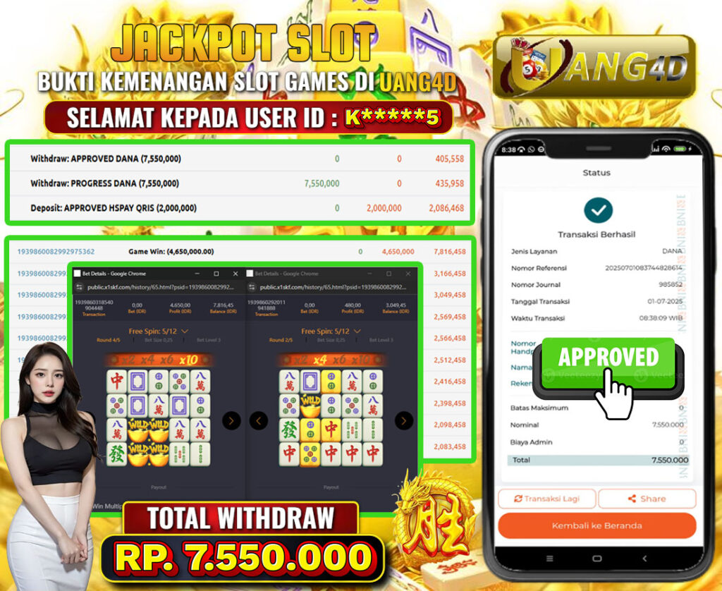 Jangan lewatkan kesempatan untuk meraih kemenangan besar. Daftar sekarang di UANG4D dan rasakan pengalaman bermain slot terbaik yang pernah ada! Putar gulungan, menangkan jackpot, dan jadilah bagian dari komunitas pemain sukses kami!