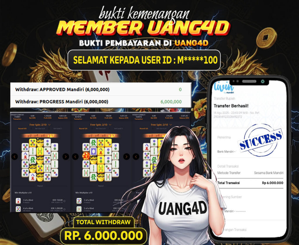 Jangan lewatkan kesempatan untuk meraih kemenangan besar. Daftar sekarang di UANG4D dan rasakan pengalaman bermain slot terbaik yang pernah ada! Putar gulungan, menangkan jackpot, dan jadilah bagian dari komunitas pemain sukses kami!