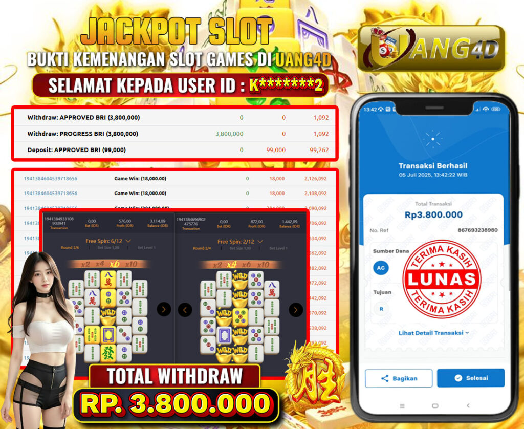 Jangan lewatkan kesempatan untuk meraih kemenangan besar. Daftar sekarang di UANG4D dan rasakan pengalaman bermain slot terbaik yang pernah ada! Putar gulungan, menangkan jackpot, dan jadilah bagian dari komunitas pemain sukses kami!