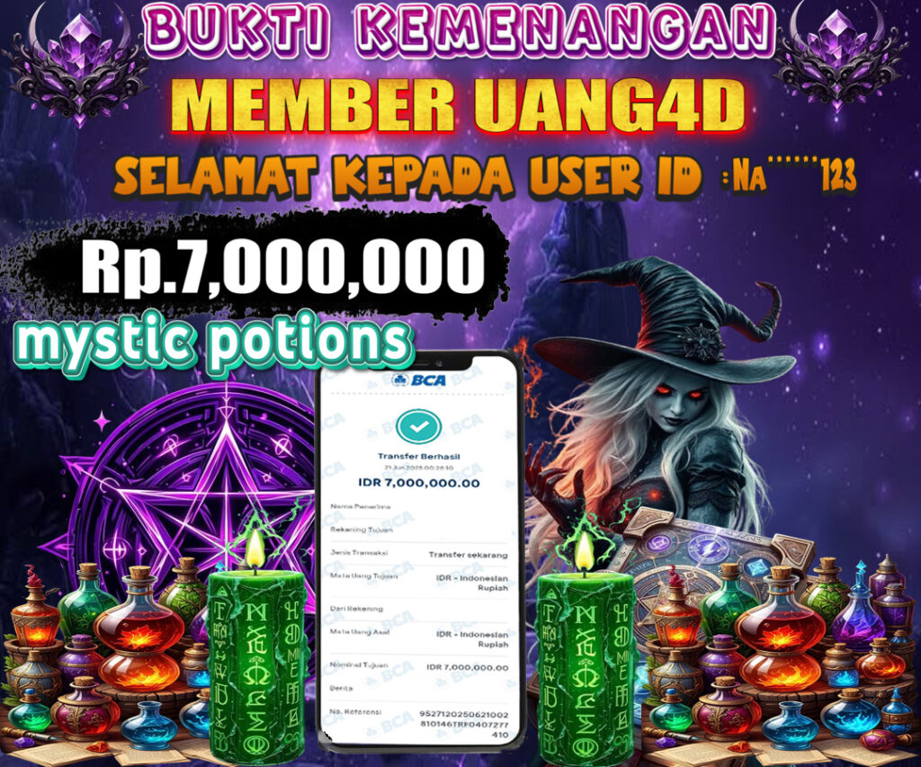 UANG4D – JACKPOT SLOT MYSTIC POTIONS 21 JUNI 2025 , Jackpot Slot, Kemenangan Slot, Bukti Kemenangan Slot, Kemenangan Slot Pragmatic Play, Menang Slot online, Slot Gacor, Situs Aman Terpercaya, Withdraw Berapapun Pasti DI Bayar Tuntas, Maxwin Slot Online.