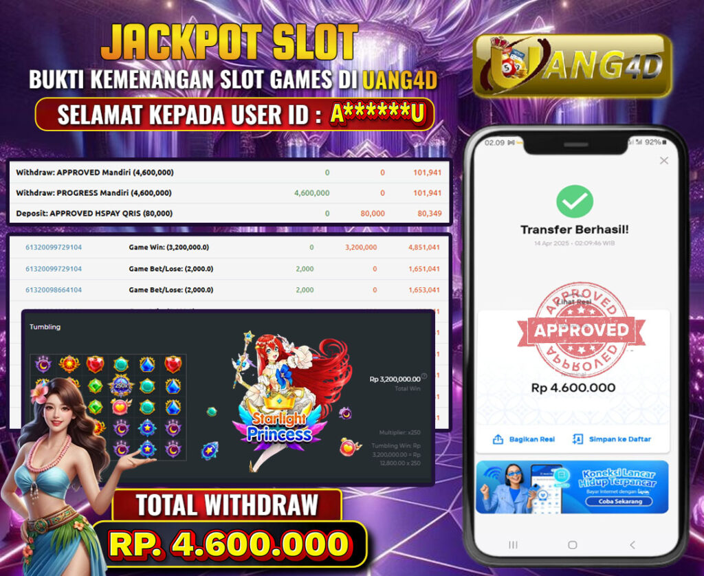 UANG4D –JACKPOT SLOT STARLIGHT PRINCES 14 APRIL 2025, Kemenangan Slot, Bukti Kemenangan Slot, Kemenangan Slot Pragmatic Play, Menang Slot online, Slot Gacor, Situs Aman Terpercaya, Withdraw Berapapun Pasti DI Bayar Tuntas, Maxwin Slot Online.