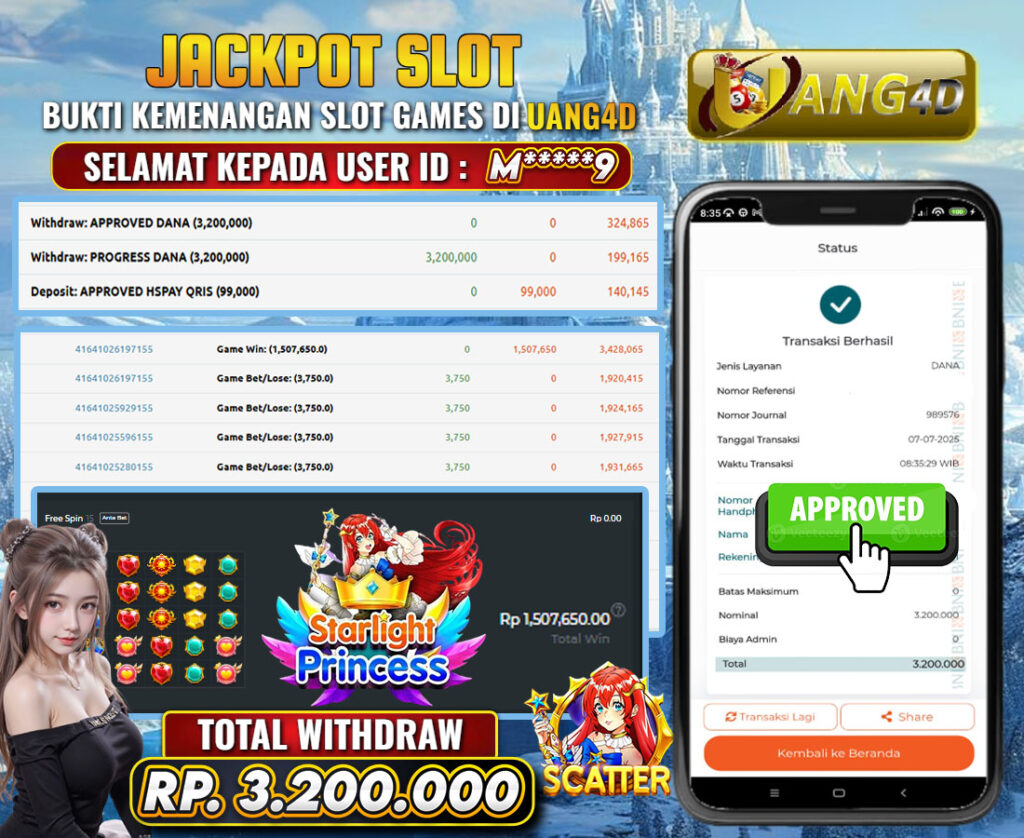 UANG4D –JACKPOT SLOT STARLIGHT PRINCES 7 JULI 2025, Kemenangan Slot, Bukti Kemenangan Slot, Kemenangan Slot Pragmatic Play, Menang Slot online, Slot Gacor, Situs Aman Terpercaya, Withdraw Berapapun Pasti DI Bayar Tuntas, Maxwin Slot Online.