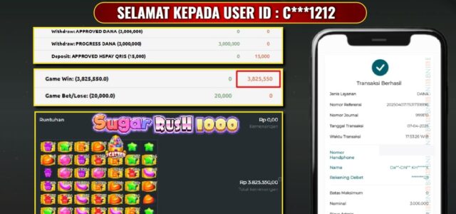 UANG4D JACKPOT SLOT SUGAR RUSH 1000 07 APRIL 2025, Kemenangan Slot, Bukti Kemenangan Slot, Kemenangan Slot Pragmatic Play, Menang Slot online, Slot Gacor, Situs Aman Terpercaya, Withdraw Berapapun Pasti DI Bayar Tuntas, Maxwin Slot Online.