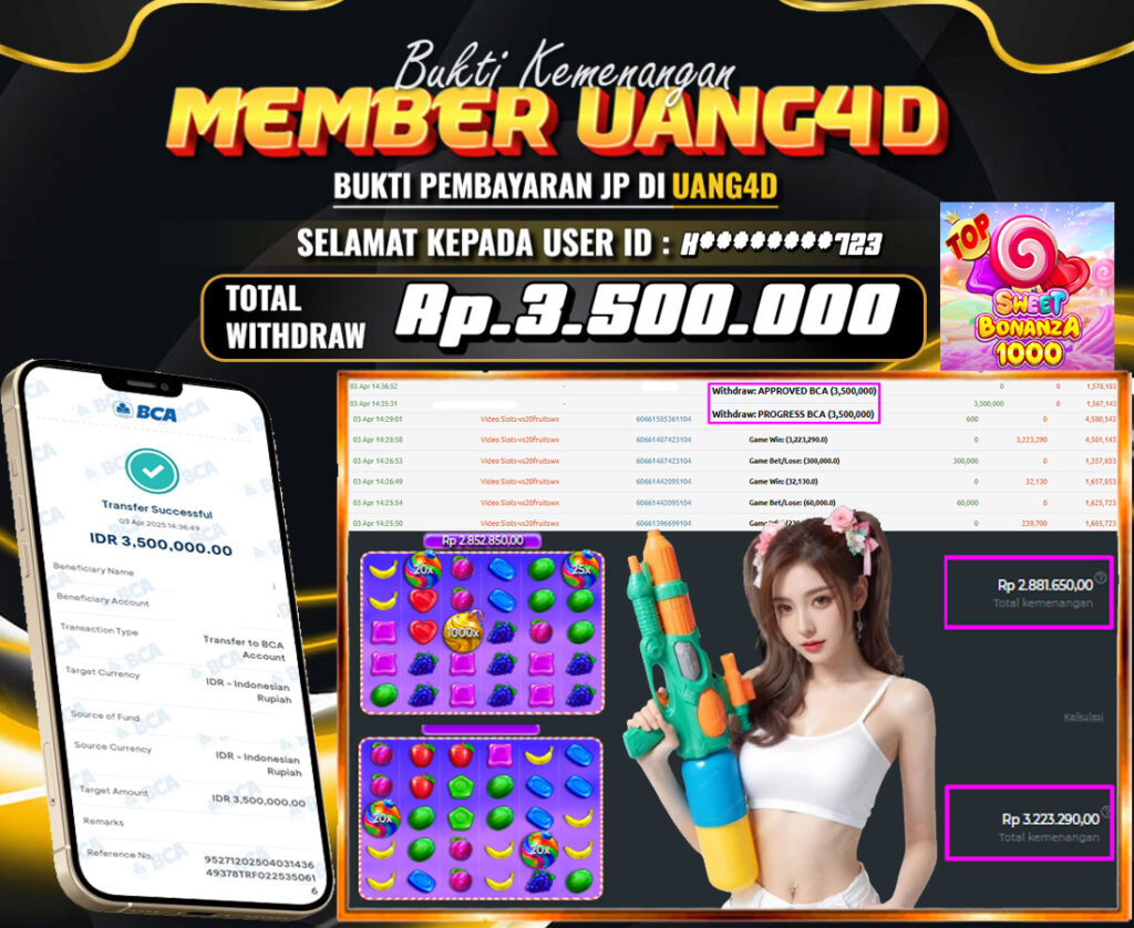 UANG4D –JACKPOT SLOT SWEET BONANZA 03 APRIL 2025 Jackpot Slot, Kemenangan Slot, Bukti Kemenangan Slot, Kemenangan Slot Pragmatic Play, Menang Slot online, Slot Gacor, Situs Aman Terpercaya, Withdraw Berapapun Pasti DI Bayar Tuntas, Maxwin Slot Online.