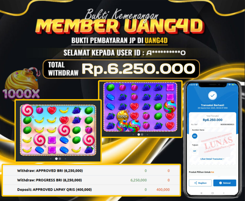 UANG4D –JACKPOT SLOT SWEET BONANZA1000 29 SEPTEMBER 2025, Kemenangan Slot, Bukti Kemenangan Slot, Kemenangan Slot Pragmatic Play, Menang Slot online, Slot Gacor, Situs Aman Terpercaya, Withdraw Berapapun Pasti DI Bayar Tuntas, Maxwin Slot Online.
