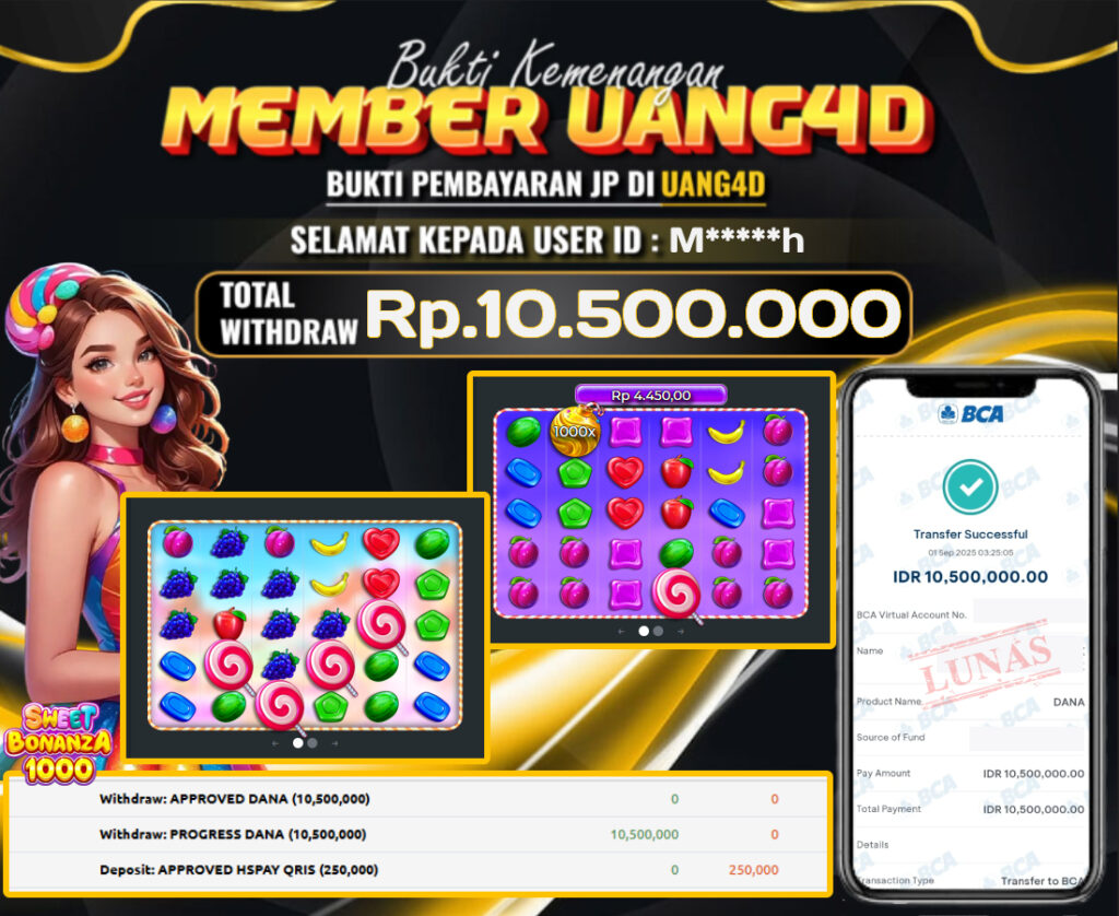 UANG4D –JACKPOT SLOT SWEET BONANZA1000 01 September 2025, Kemenangan Slot, Bukti Kemenangan Slot, Kemenangan Slot Pragmatic Play, Menang Slot online, Slot Gacor, Situs Aman Terpercaya, Withdraw Berapapun Pasti DI Bayar Tuntas, Maxwin Slot Online.