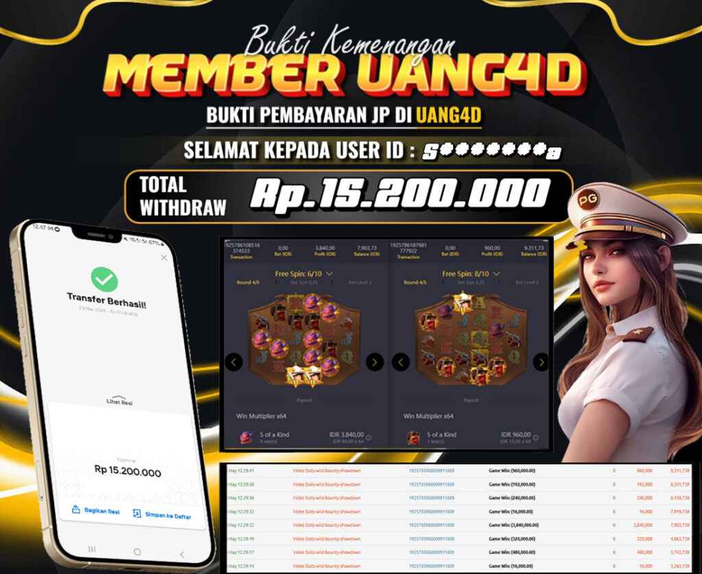 Jangan lewatkan kesempatan untuk meraih kemenangan besar. Daftar sekarang di UANG4D dan rasakan pengalaman bermain slot terbaik yang pernah ada! Putar gulungan, menangkan jackpot, dan jadilah bagian dari komunitas pemain sukses kami!