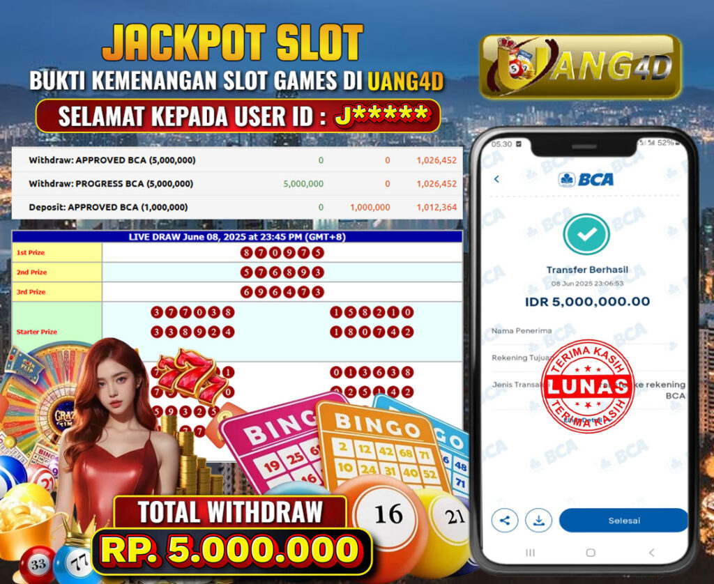 UANG4D dikenal sebagai situs terpercaya yang selalu menghadirkan pengalaman bermain slot online yang aman, fair, dan berlisensi resmi. Di sini, kami tidak hanya sekadar memberikan janji, tapi bukti nyata berupa slip kemenangan yang dapat Anda lihat secara langsung.