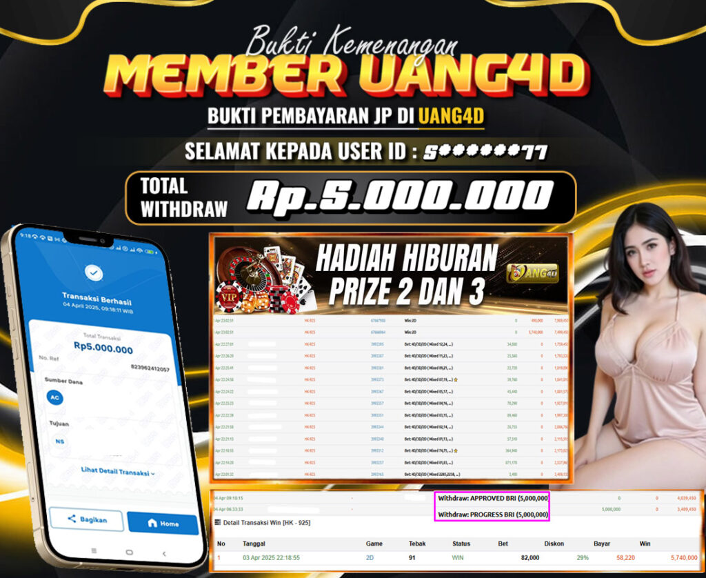 Setiap hari, member UANG4D berhasil meraih jackpot besar dari berbagai provider togel ternama yang kami sediakan, seperti Sydney, Singapore, Hongkong dan masih banyak lagi. Kami secara rutin menampilkan bukti screenshot atau rekapan kemenangan yang berhasil diraih, mulai dari kemenangan ratusan ribu hingga puluhan juta rupiah. Semua slip kemenangan ini kami hadirkan untuk membuktikan bahwa di UANG4D, peluang menang itu nyata.