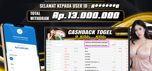 TOTAL KEMENANGAN : Rp. 13.000.000,-